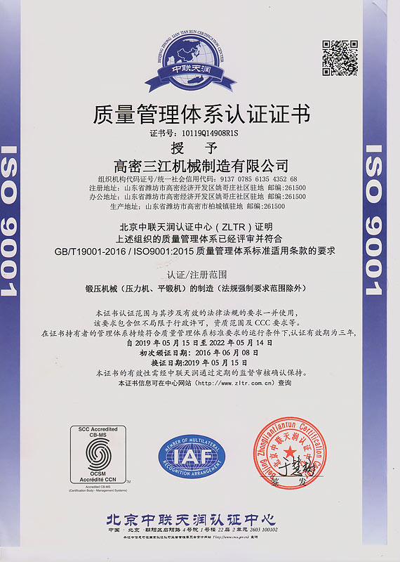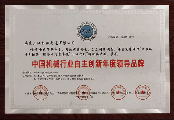 三江機(jī)械“以創(chuàng)新求發(fā)展”,注重知識(shí)產(chǎn)權(quán)申請(qǐng)和保護(hù),近年來(lái)已獲得國(guó)家高新技術(shù)企業(yè)和山東省“專精特新”企業(yè),擁有ISO9001質(zhì)量管理體系認(rèn)證和歐盟CE認(rèn)證。公司注重研發(fā)創(chuàng)新,共引進(jìn)國(guó)內(nèi)先進(jìn)技術(shù)成果3項(xiàng),取得發(fā)明專利5項(xiàng),實(shí)用新型專利30余項(xiàng),軟件著作權(quán)5項(xiàng)。先后與南京航空航天大學(xué)、山東理工大學(xué)、青島科技大學(xué)等高校在金屬成形工藝和新材料應(yīng)用等領(lǐng)域展開(kāi)合作。