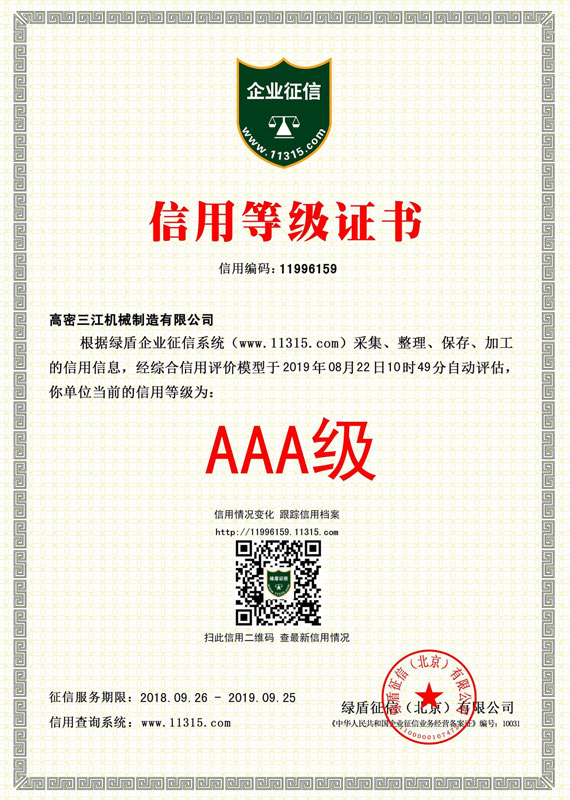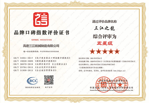 “三江之龍®”是高密三江2005年就開(kāi)始注冊(cè)使用的品牌商標(biāo),已經(jīng)成為鍛壓行業(yè)知名品牌,多次榮獲商務(wù)部、信用中國(guó)、中國(guó)企業(yè)品牌評(píng)價(jià)中心等政府、行業(yè)協(xié)會(huì)的表彰,受到各行業(yè)客戶的充分肯定和廣泛贊譽(yù)。