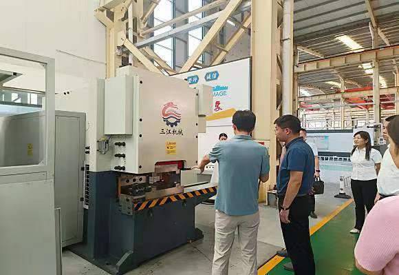 2023年8月25日下午,高密市委常委、組織部部長(zhǎng)王楷帶隊(duì)蒞臨三江機(jī)械走訪觀摩。公司總經(jīng)理王盟對(duì)考察團(tuán)表示熱烈的歡迎并簡(jiǎn)要匯報(bào)了公司的生產(chǎn)規(guī)模、經(jīng)營(yíng)情況、經(jīng)濟(jì)效益、未來發(fā)展規(guī)劃及目前面臨的困難與挑戰(zhàn)。